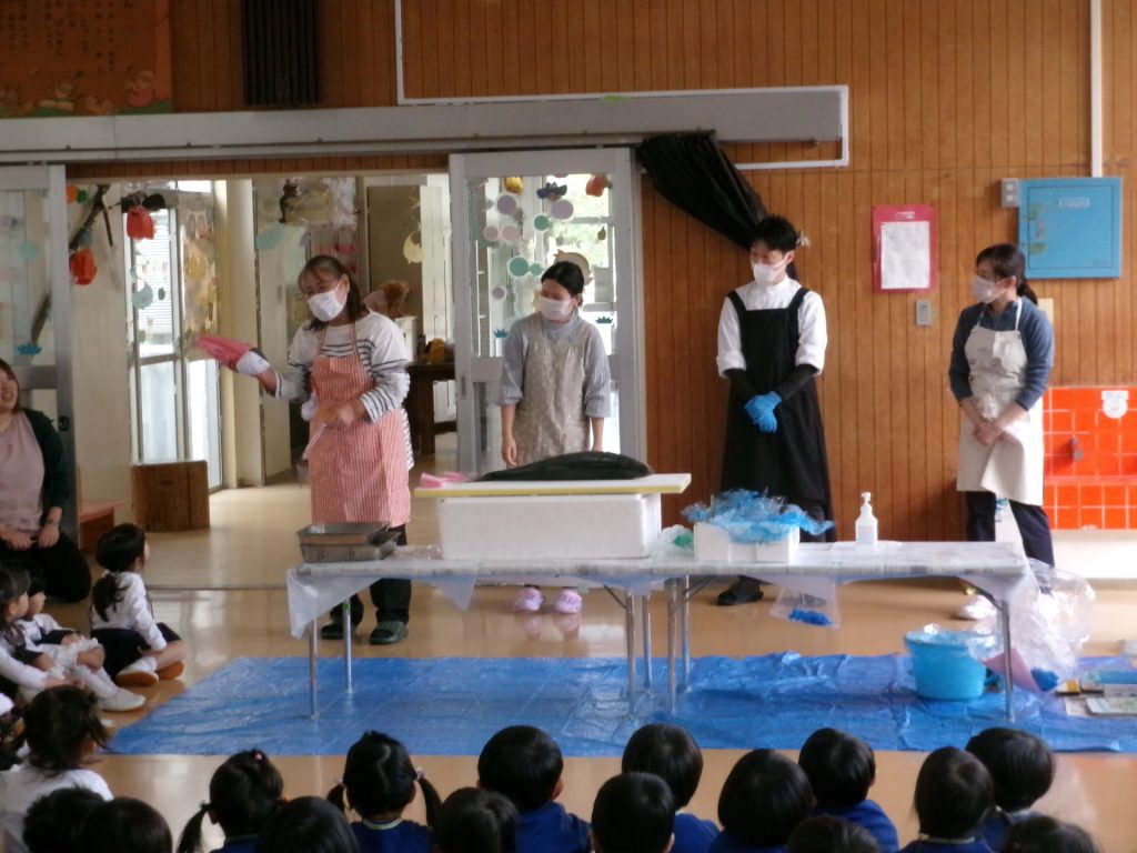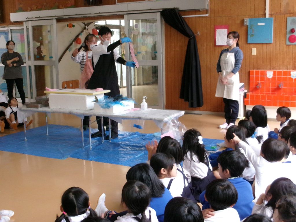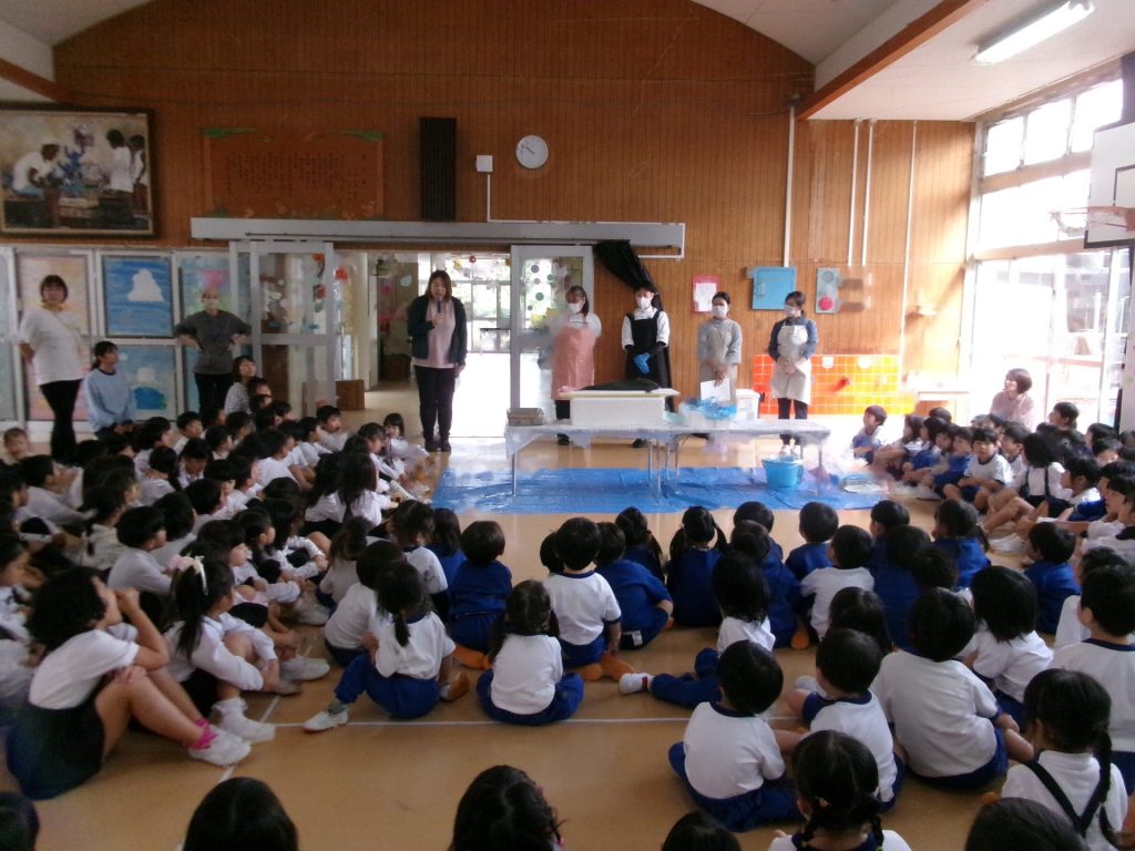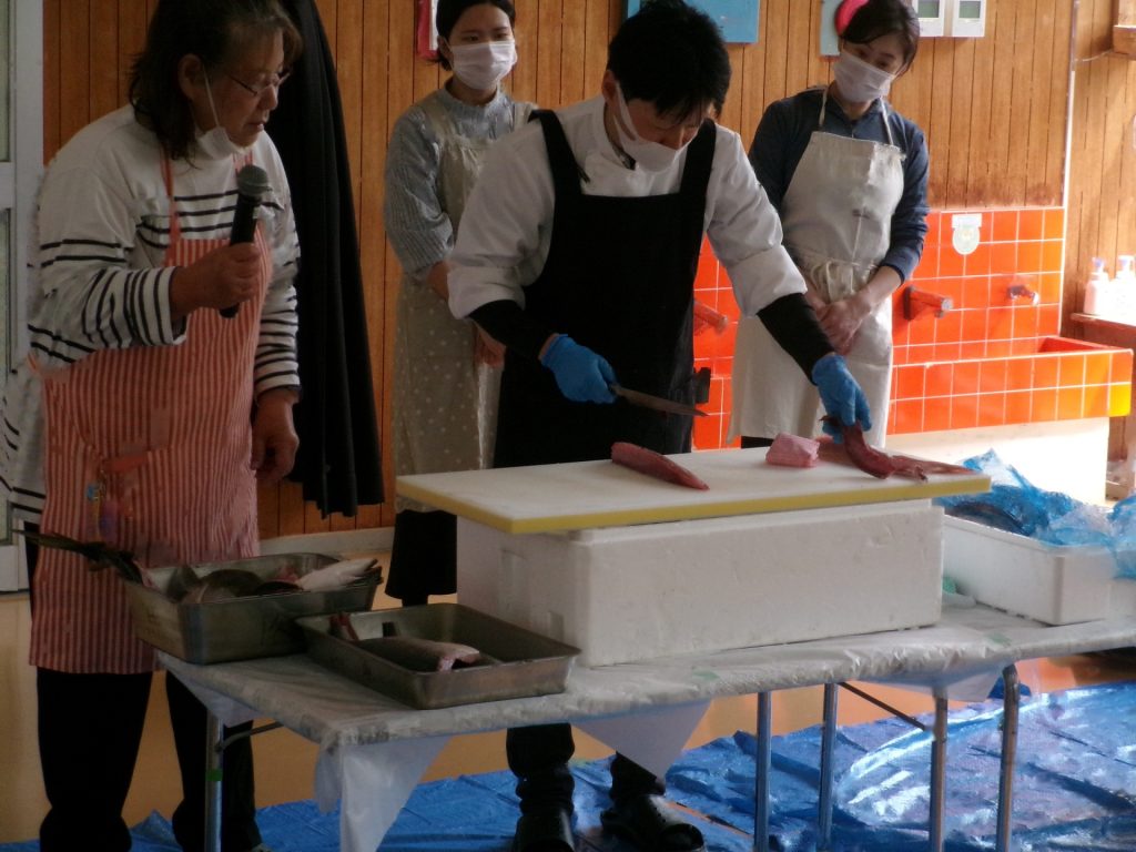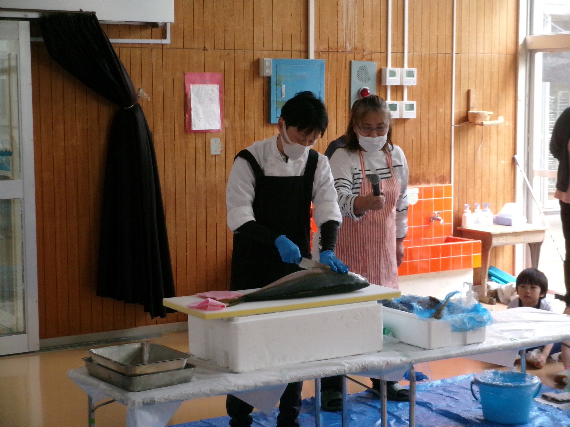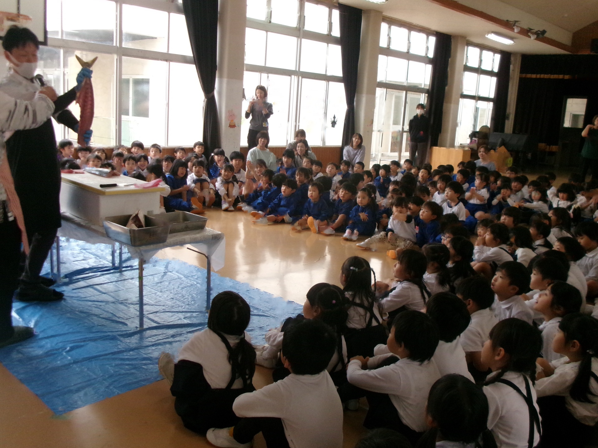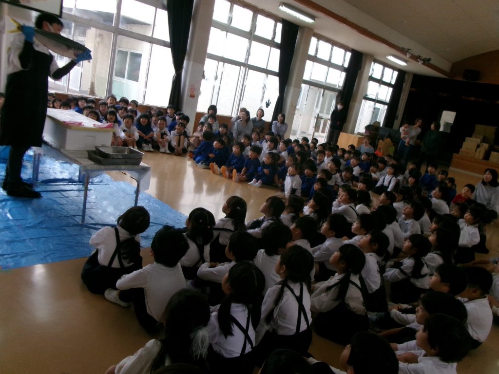 2025.11.21 ☆魚の解体ショー☆ 先月、食育の一環として魚の解体ショーの見学をしました。 初めて見る子どもも多く、調理師さんの華麗な手さばきに釘付けの子ども達でした。 解体ショーを通して、≪命を頂いていること≫を感じてくれたことと思います。