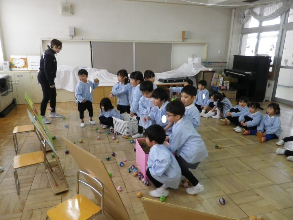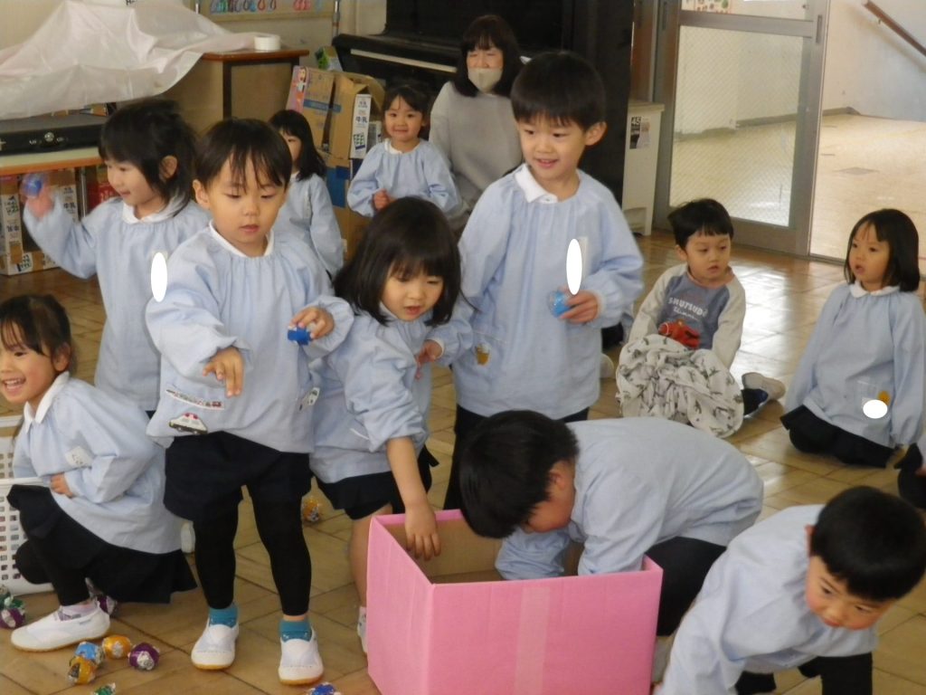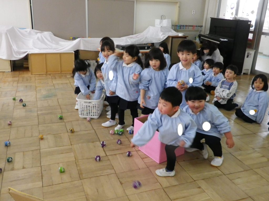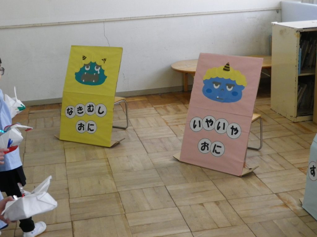 自分の心の中の鬼をやっつけるべく、「おにはーそと!ふくは―うち!」と一生懸命になげました♪