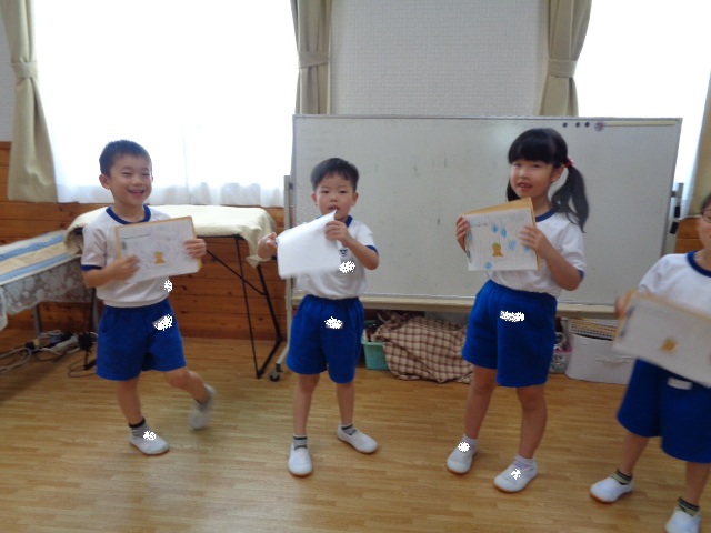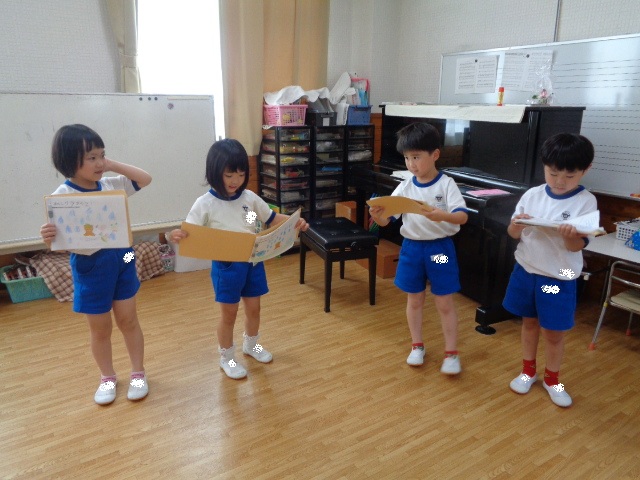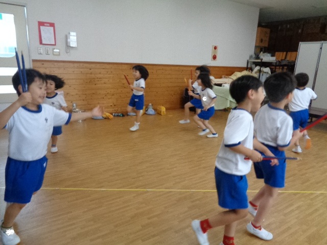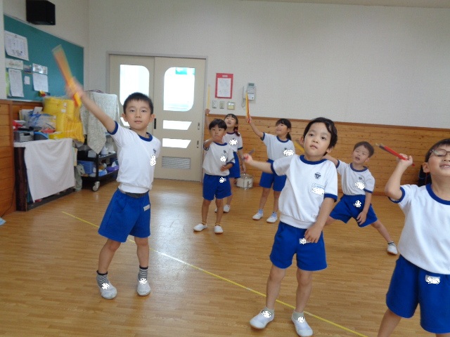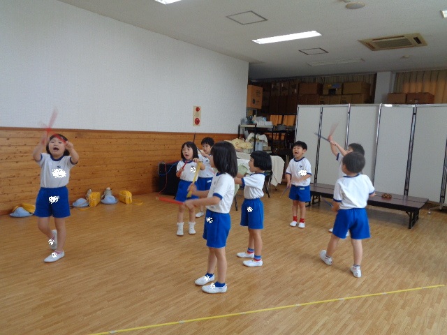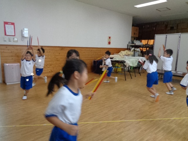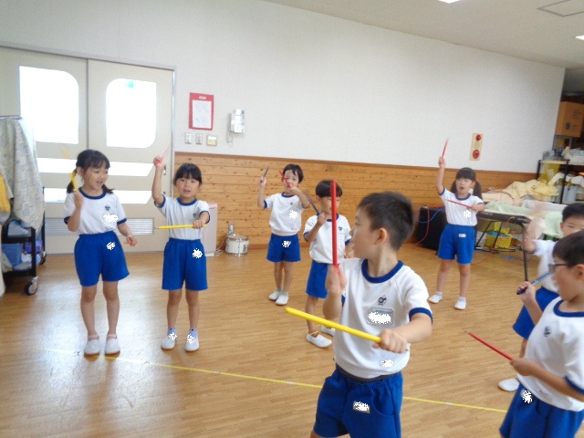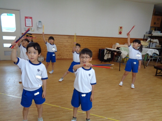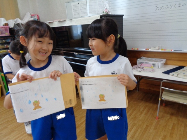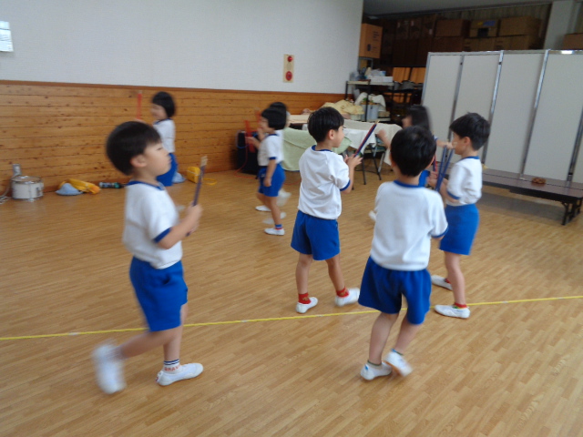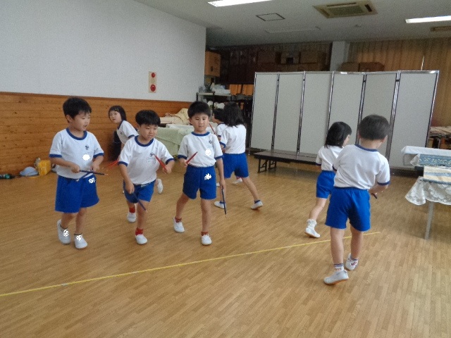 ~年長さん~ 傘をさしておさんぽ♪色々な雨のリズムを表現しました。
