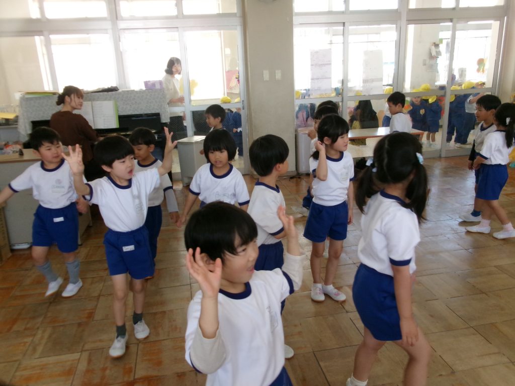 4月リトミックの様子です♪音楽教室の先生によるリトミックの時間は子ども達が大好きな時間(^^)ピアノに合わせて歌ったり、身体を動かしたり、春をたくさん感じられる内容の楽しい時間でした!